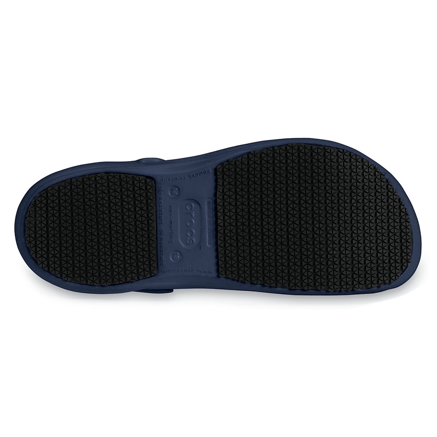 Enclosed toe design and thicker metatarsal area help protect foot from kitchen spills. Odour-resistant, easy to clean, and quick to dry. Fully molded Croslite material construction. Heel strap. Crocs Lock slip-resistant tread. CE Certified.