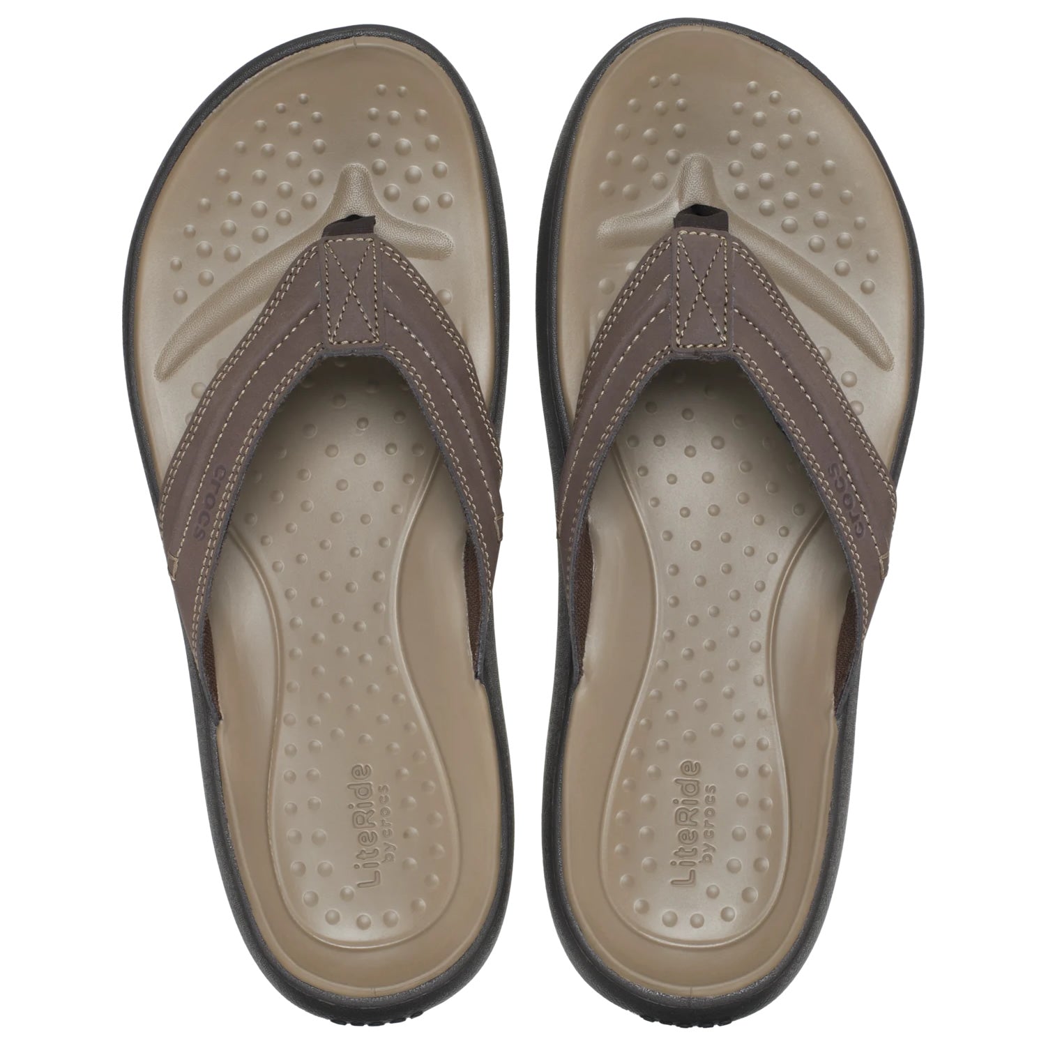Faux leather uppers with stitched detailing give the Men’s Yukon Vista II LiteRide Flip a rugged, outdoorsy look. Designed for comfort and versatility, these easygoing flip flops feature soft textile toe posts and a stylish, laid back design. The durable Croslite foam outsoles are built to handle outdoor conditions, while the LiteRide footbeds offer plush, sink in cushioning, perfect for relaxing by the campfire, exploring the trail, or unwinding at home.